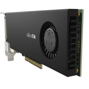 Save space in your server room by adding a real CCR2004.. within the server itself! This unique product combines a simple 2x 25 Gigabit PCIe Ethernet adapter with the impressive capabilities of a fully-fledged router.
